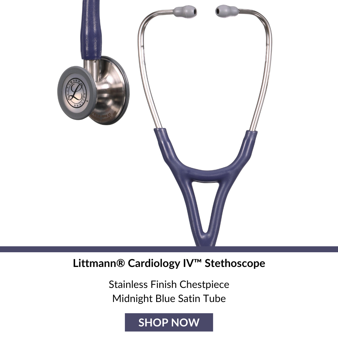 Built to hear more The Littmann® Cardiology IV™ Diagnostic Stethoscope is useful in critical care and challenging environments, such as the ED, ICU, cardiac ICU, step-down unit and other dynamic locations. Hear subtle changes in the patients' status to then diagnose and make decisions with confidence. Designed to help you listen for hard-to-hear sounds, including aortic stenosis, S3 gallop murmurs and faint pulmonary anomalies. *Better audibility of high-frequency sounds (adult side, firm pressure) compared to Cardiology III can help you learn more about your patient’s condition.